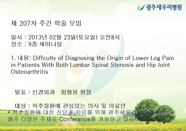 * 척추질환에 대한 진단과 치료를 위해 광주새우리병원에서는 매주 다양한 주제로 Conference를 개최하고 있습니다.