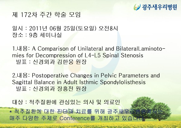 * 척추질환에 대한 진단과 치료를 위해 광주새우리병원에서는 매주 다양한 주제로 Conference를 개최하고 있습니다.