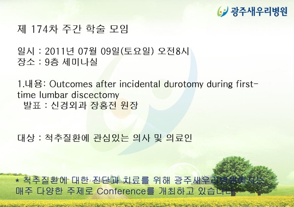 * 척추질환에 대한 진단과 치료를 위해 광주새우리병원에서는 매주 다양한 주제로 Conference를 개최하고 있습니다.