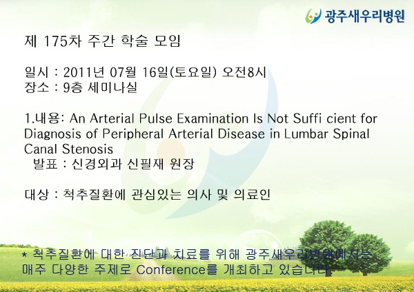 * 척추질환에 대한 진단과 치료를 위해 광주새우리병원에서는 매주 다양한 주제로 Conference를 개최하고 있습니다.