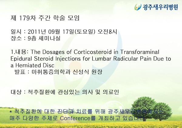 1.내용: The Dosages of Corticosteroid in Transforaminal Epidural Steroid Injections for Lumbar Radicular Pain Due to a Herniated Disc