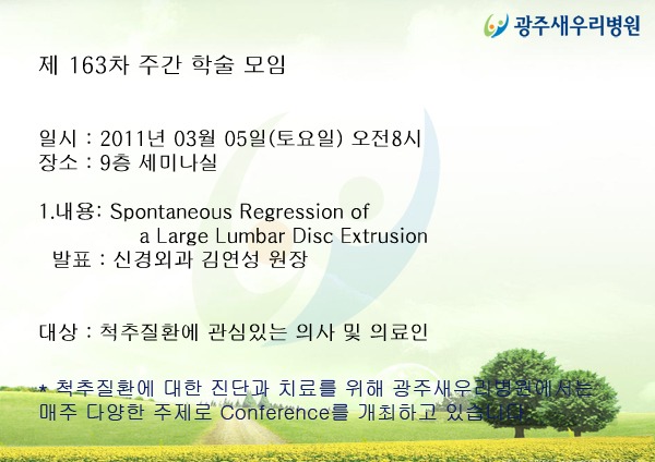 * 척추질환에 대한 진단과 치료를 위해 광주새우리병원에서는 매주 다양한 주제로 Conference를 개최하고 있습니다.