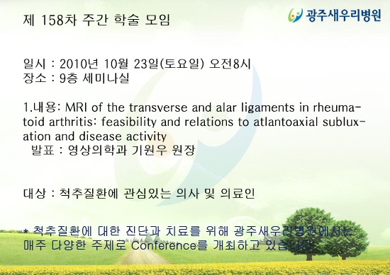*척추질환에 대한 진단과 치료를 위해 광주새우리병원에서는 매주 다양한 주제로 Conference를 개최하고 있습니다.